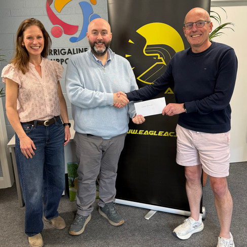 Karen Bevan & Ruairi Egan Eagle AC Race Directors present cheques to